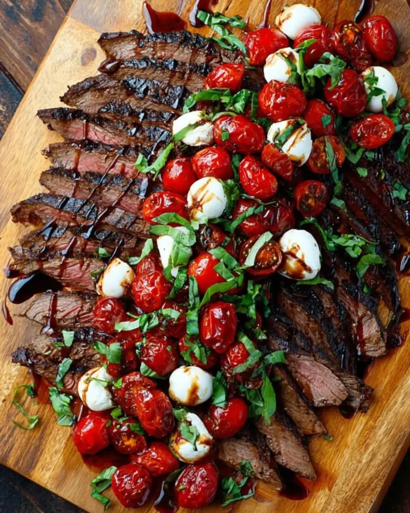 Juicy Balsamic Glazed Flank Steak with a Vibrant Caprese Crunch